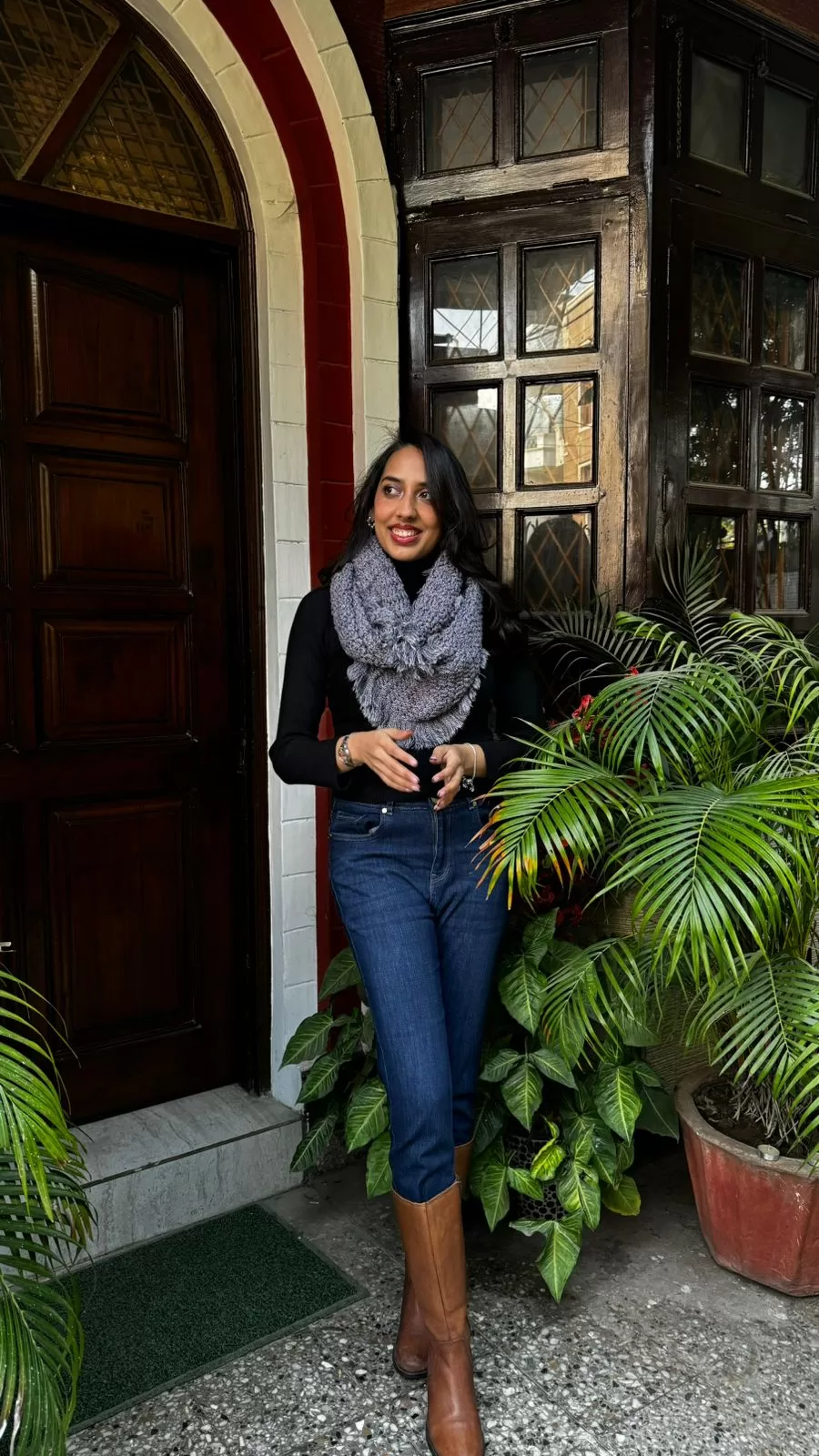 Fits All Sizes. Paired best with our Ribbed Turtleneck in Black. Click Here to buy.